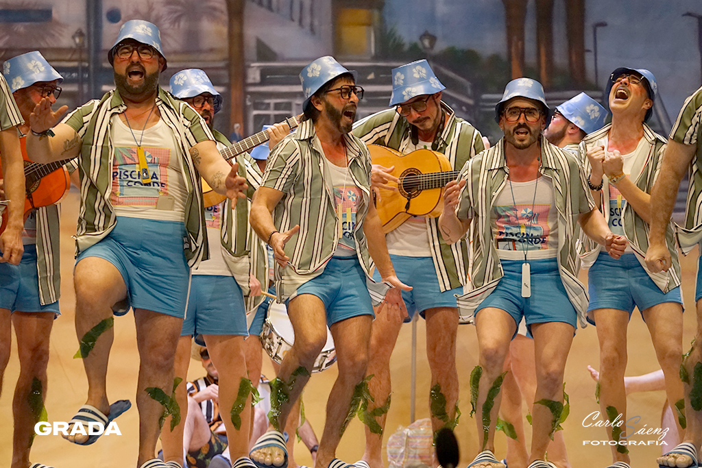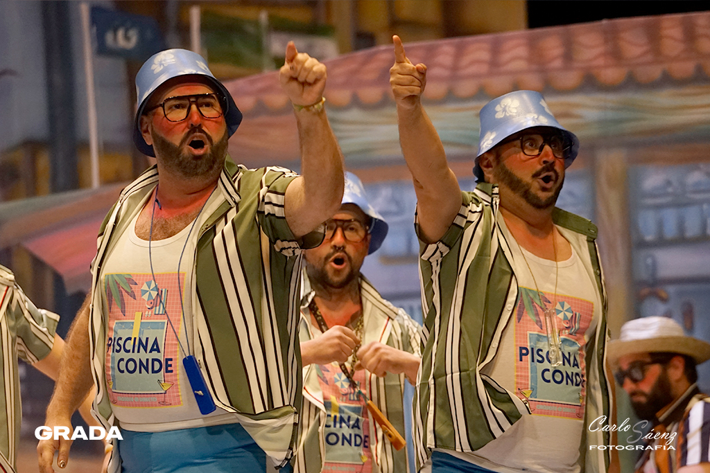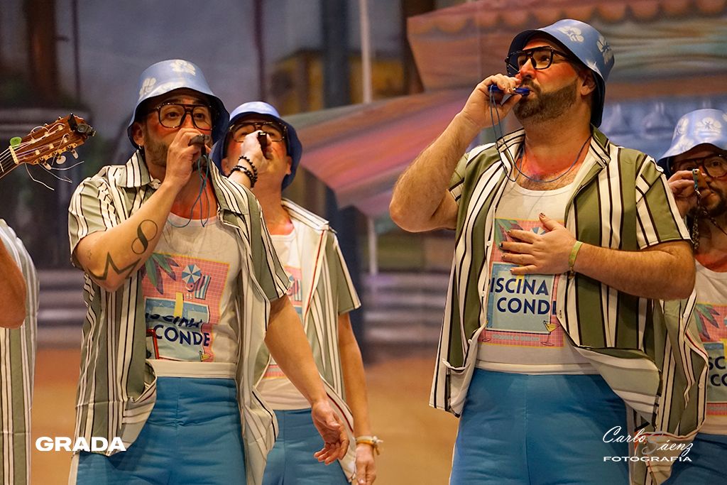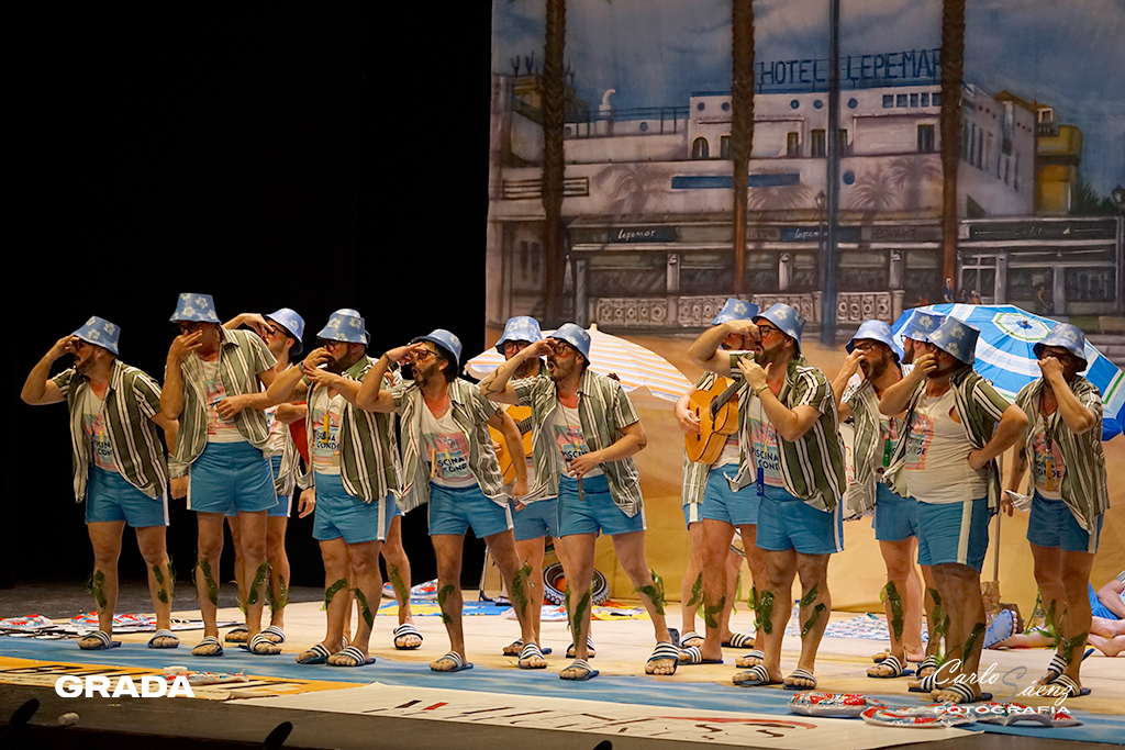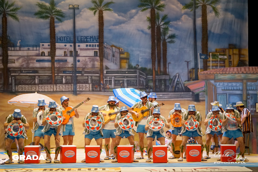 Empezaba la noche con uno de los platos fuerte de la preliminar. Los Mirinda volvían al concurso con ganas de resarcirse del chasco de la pasada edición en la que no consiguieron colarse en la final. Un año más, Los Mirinda vuelven a hacer gala de su estilo inconfundible y que tiene mucho público. Están en La Antilla como gran parte de Badajoz en verano. El tipo les va como anillo al dedo y completaron un buen primer pase. A destacar el segundo pasodoble con su repaso de olores y sus divertidos cuplés con un estribillo muy pegadizo. El popurrí, íntegro cantado desde el tipo, con divertidos momentos. ¡Aquí si hay playa!