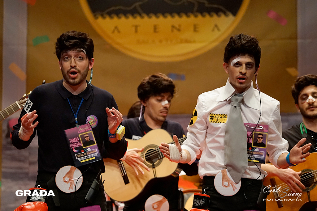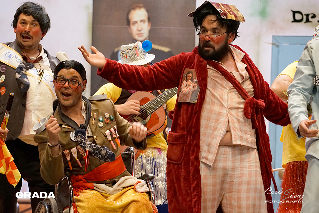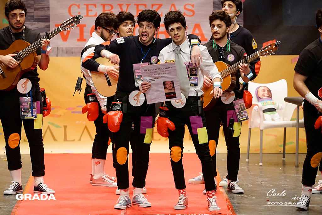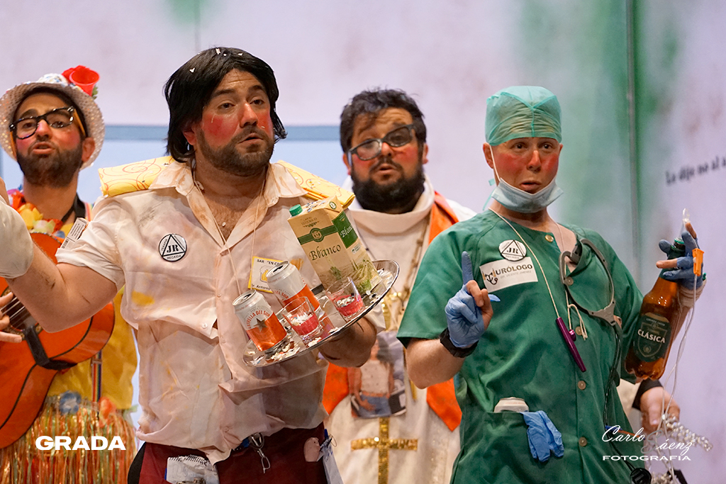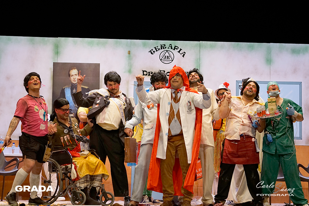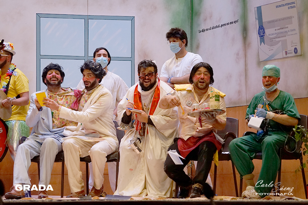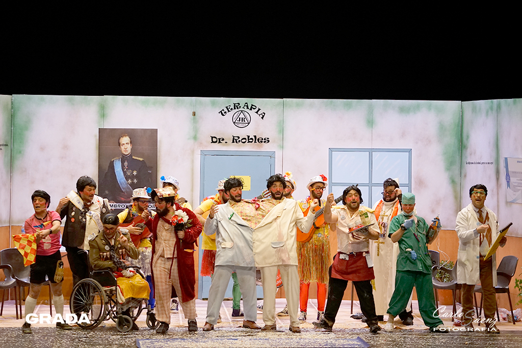 Cerraban la noche la murga oliventina que la pasada edición consiguió colarse en la final con sus narcotraficantes. Este año nos traen una propuesta muy divertida. Están en la clínica de desintoxicación del Dr. Robles. Los Camballotas han crecido mucho en los últimos años y han entendido cuáles son sus fortalezas. Como ya es habitual en sus actuaciones las carcajadas son constantes en su ritmo frenético. La presentación es maravillosa y los cuplés venían que ni pintados al tipo. Curioso lo de meter tres temas por cada cuplé. El poema al Guadiana fue sencillamente perfecto y “El corro de la potada” será recordado en este carnaval. Gran propuesta de Los Camballotas que vuelven a optar a la final.