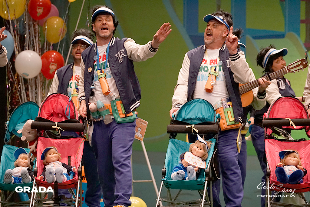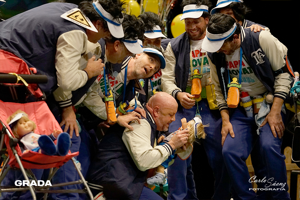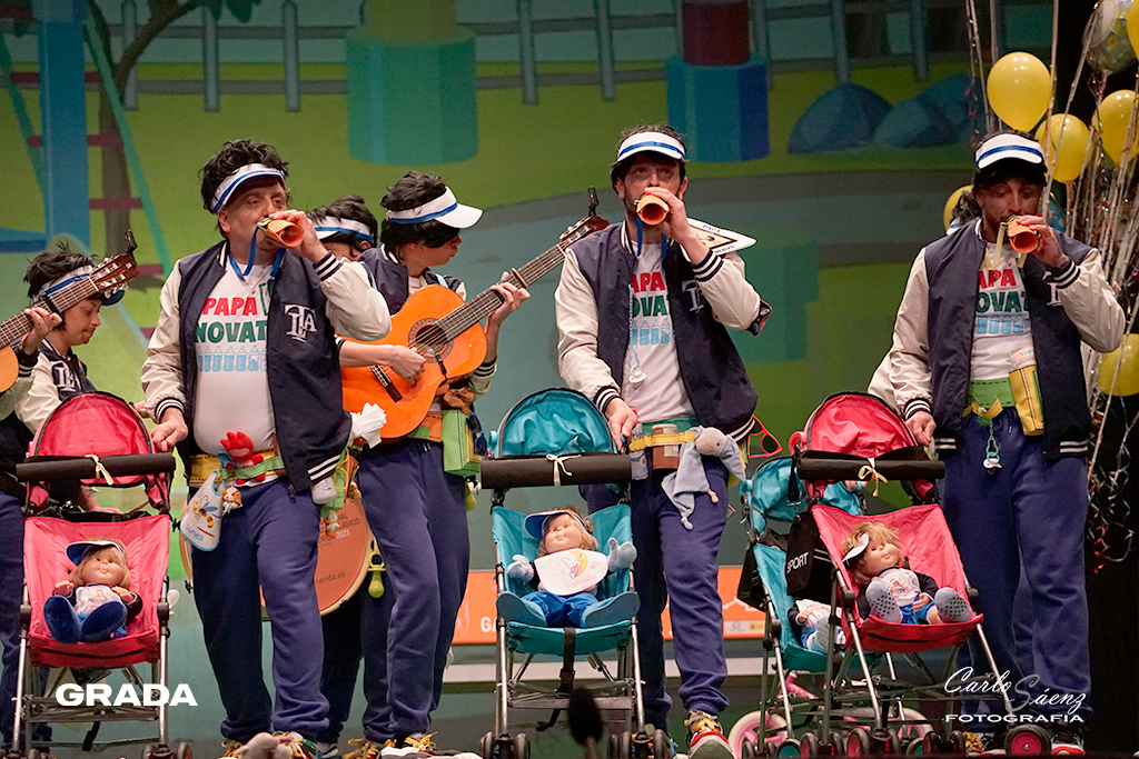 Los Novatos llegaban desde La Garrovilla tras el descanso. Nada más verlos en escena es inevitable no recordar cuando en 2012 “La mitad sí son los niños” ganaban el concurso de murgas comandado por Chiqui Mendoza y Cano. Incluso el chiste del estribillo tenía el mismo concepto. Es mal comienzo la comparación pero Los Novatos fueron convenciendo al público desde la presentación. Caen simpáticos, no cantan nada mal y traen una propuesta entretenida. Estos padres primerizos cantaron a su propia murga en el primer pasodoble y a la situación nacional y regional en el segundo. Se echó en falta algo de ritmo en popurrí. La noche de los debutantes nos ha dado una preliminar distinta pero de resultado muy digno.