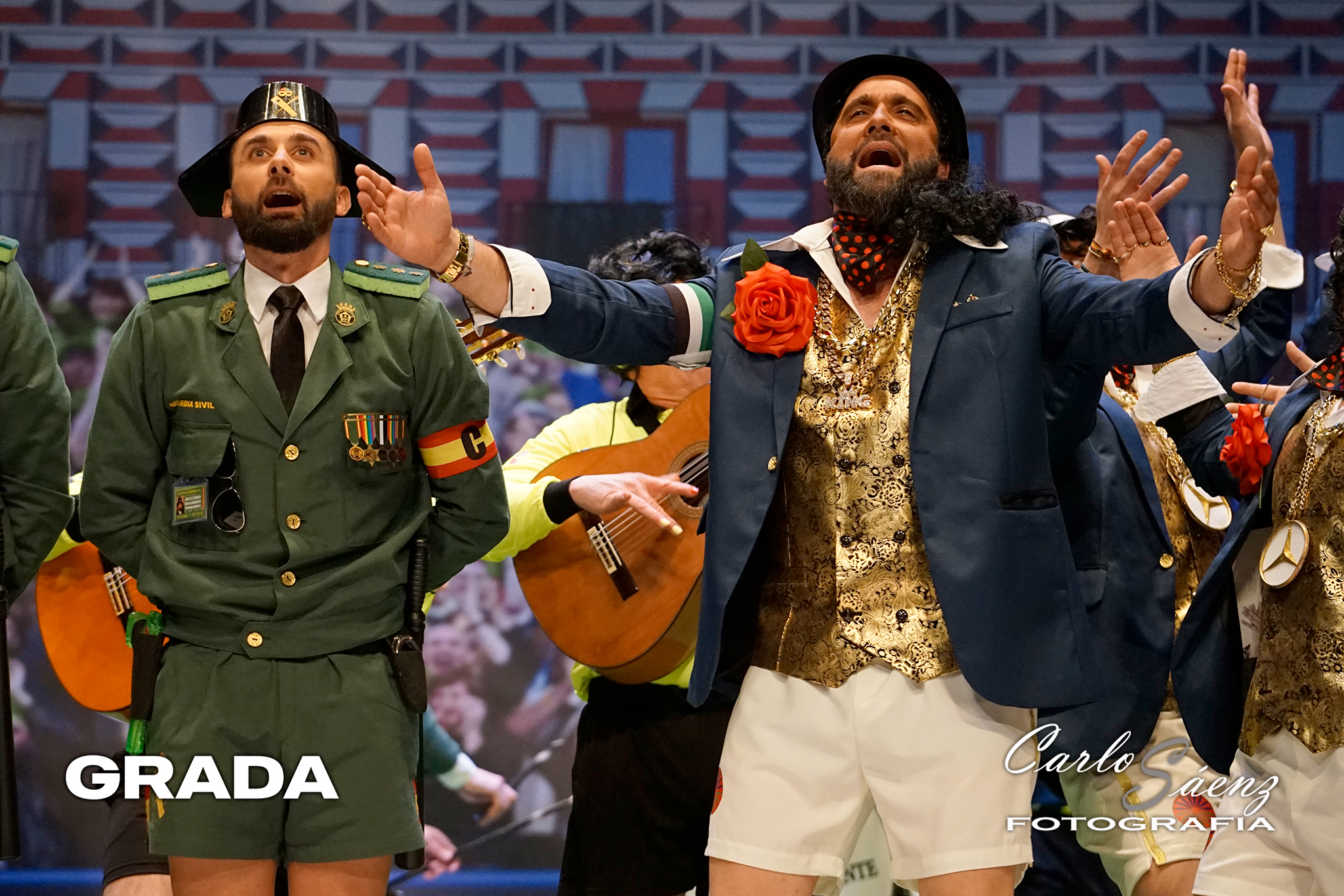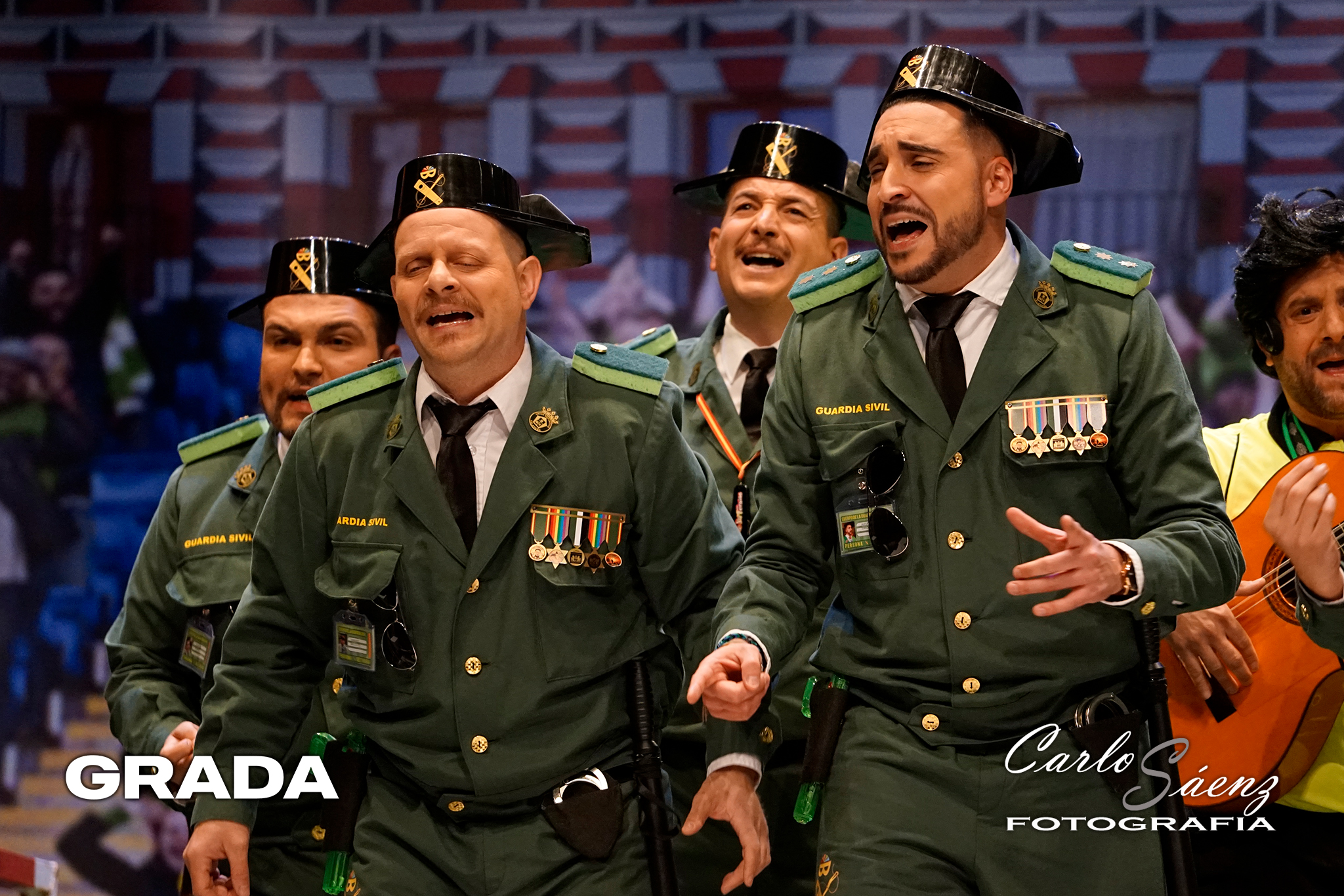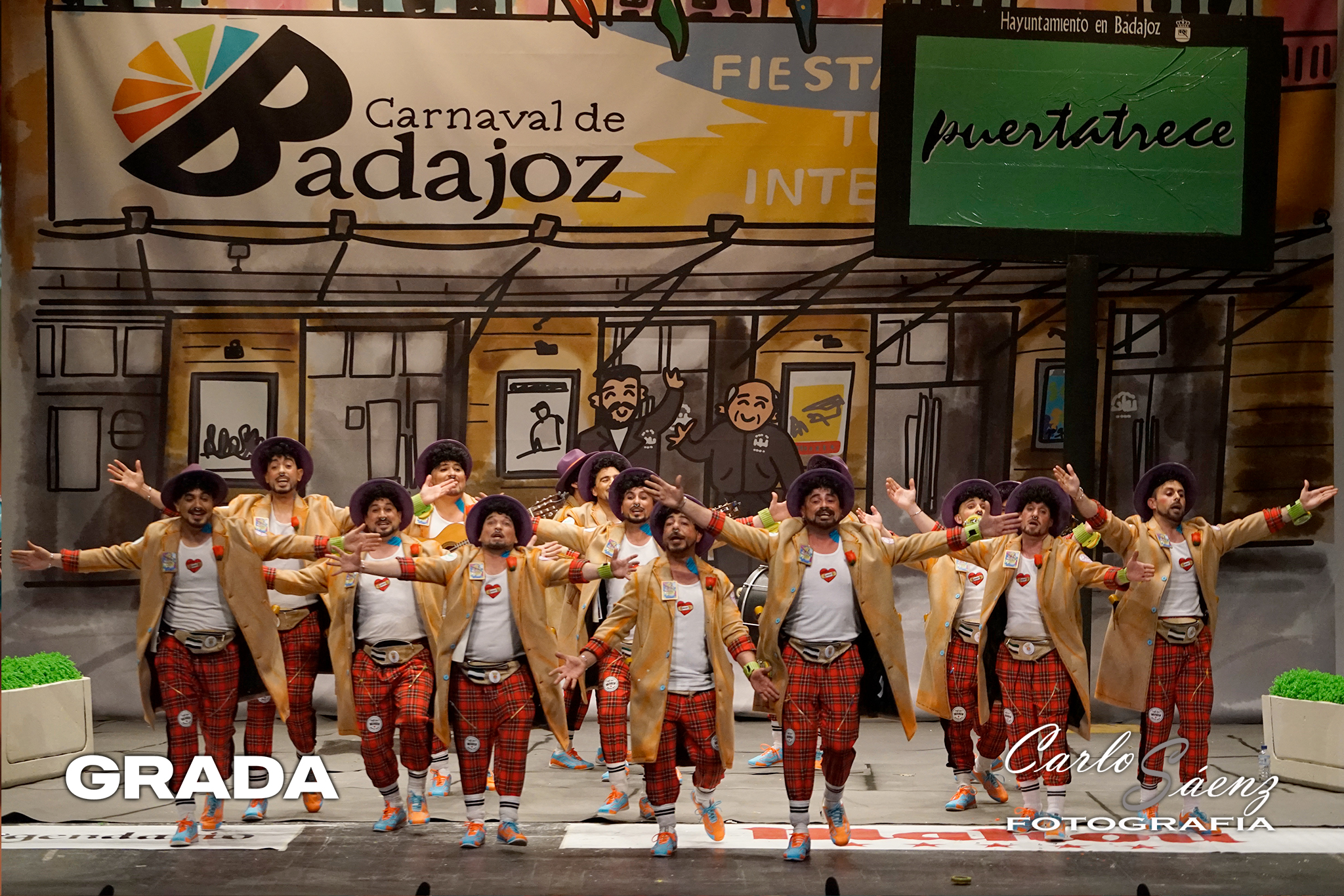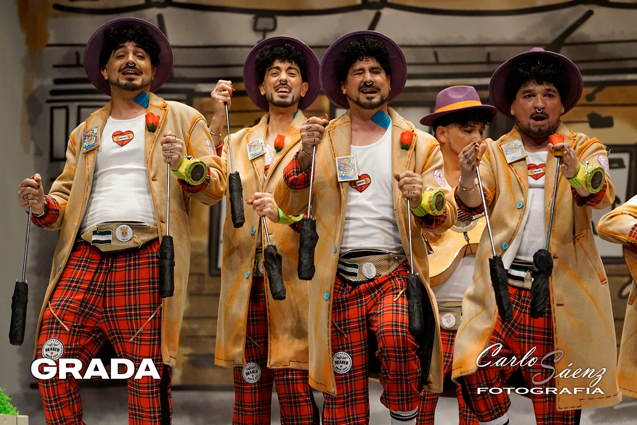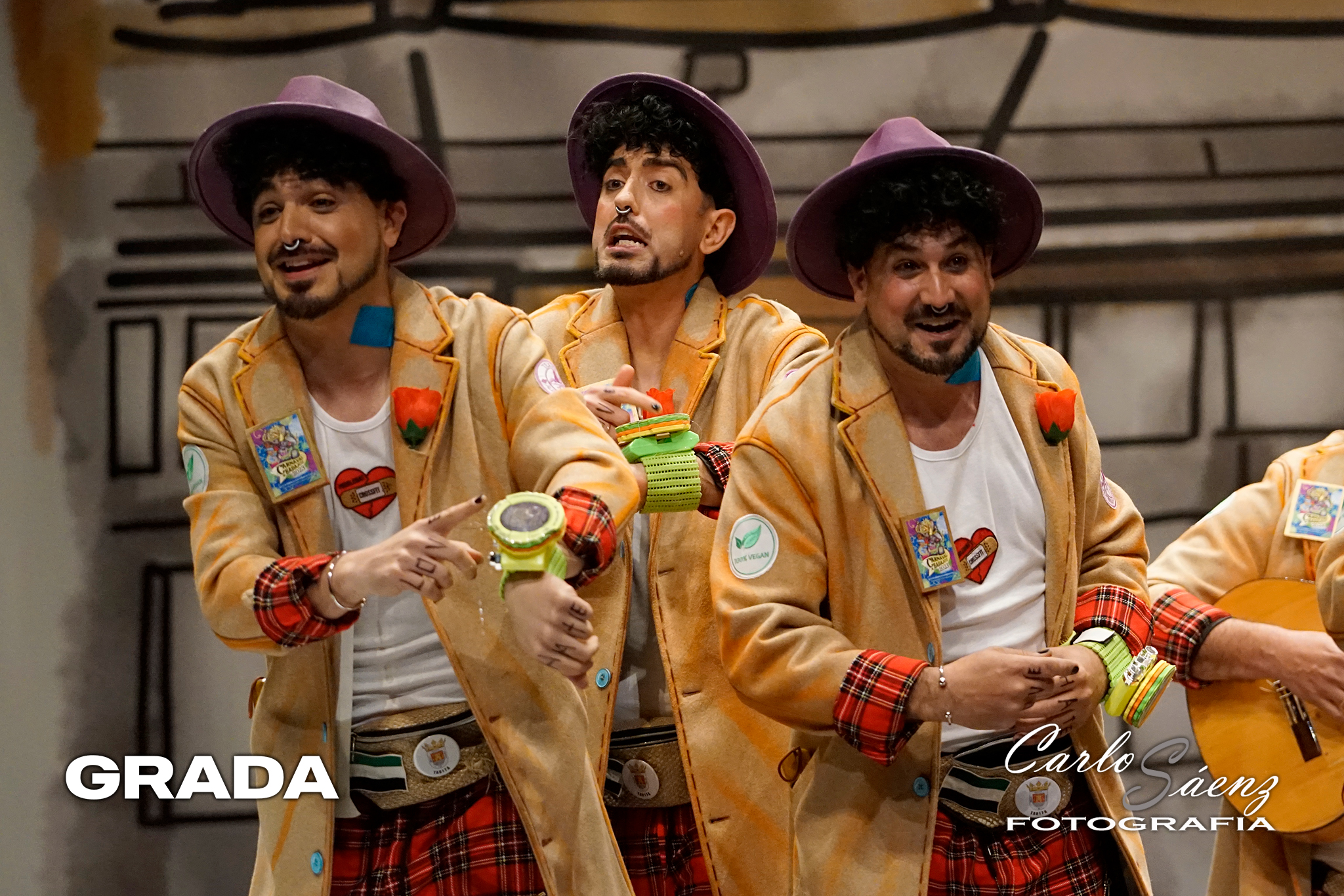 Uno de los platos fuertes de la jornada. A Contragolpe es una agrupación sólida, con recorrido y trayectoria ascendente y, aunque en los últimos años no han conseguido los resultados que esperaban, suelen caer muy bien y es una murga que siempre se le espera con deseo. Este año nos presentan a Pedro el Torpe al que solo hay que mirarle el disfraz para entender el concepto. Un gran ejemplo de cómo una idea sencilla puede convertirse en una gran actuación. Muy inteligente el primer pasodoble arrancando desde el tipo para hablar de un gran problema como el trato de los bancos a los mayores con problemas de acceso a la tecnología. La actuación está llena de detalles de torpeza muy interesantes y el momento de la procesión en el popurrí será recordado. Dicen que son torpes pero después de ver su pase en preliminares creemos que no lo son tanto… ¡Hay Pedro para rato!