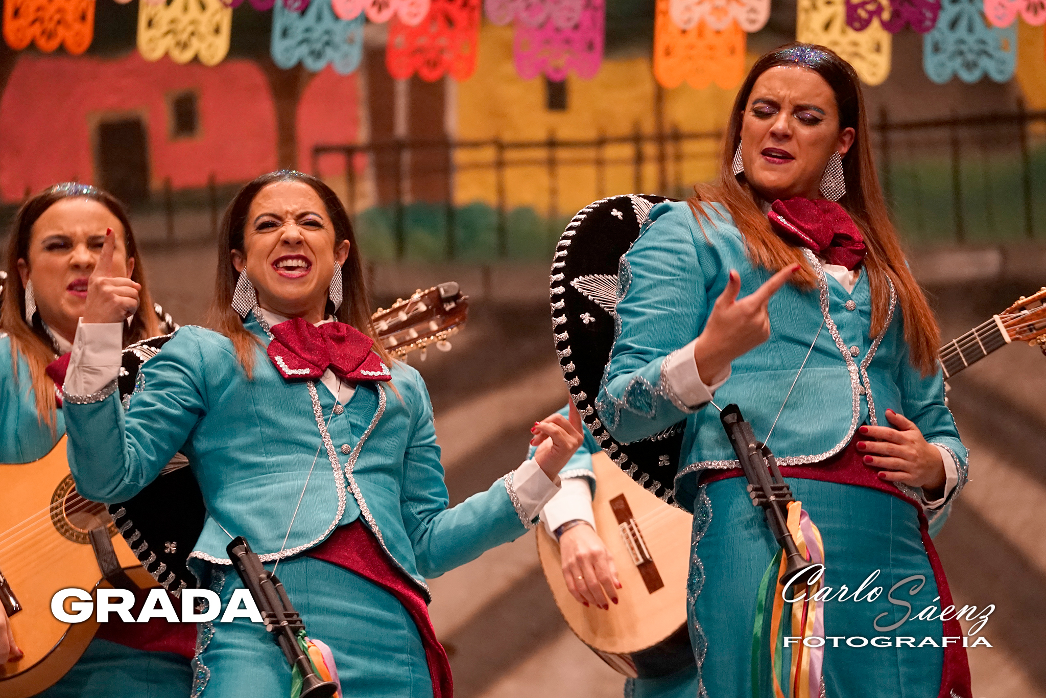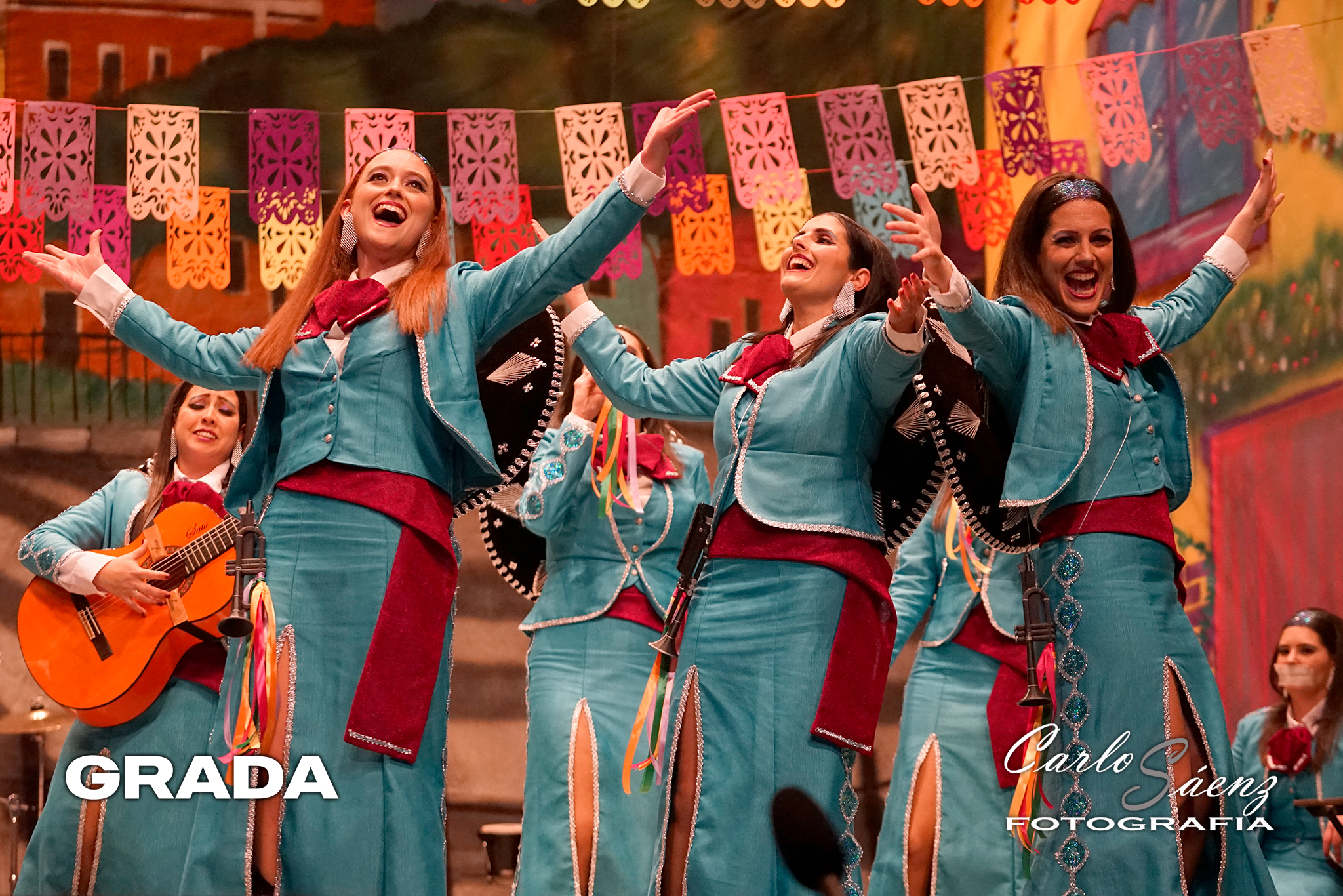 La Castafiore fue una de las agrupaciones que echamos en falta el pasado año. Después de completar uno de los mejores debuts de la historia del COMBA y confirmar el año siguiente la calidad de la agrupación nos quedamos con ganas de más. Este año presentan a unas mariachis que lucen buenas voces con acento mexicano. A destacar el primer pasodoble pidiendo mayor inversión para la investigación de enfermedades raras. Su juego de voces suena muy bien y aunque no acaban de acertar con el humor es una agrupación que completa actuaciones muy completas. A La Castafiore le queda todavía mucho por cantar.