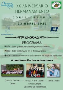 Coria conmemora entre los días 22 y 23 de abril sus dos décadas ligada a la localidad vasca de Erandio. La Asociación de Hermanamientos de
