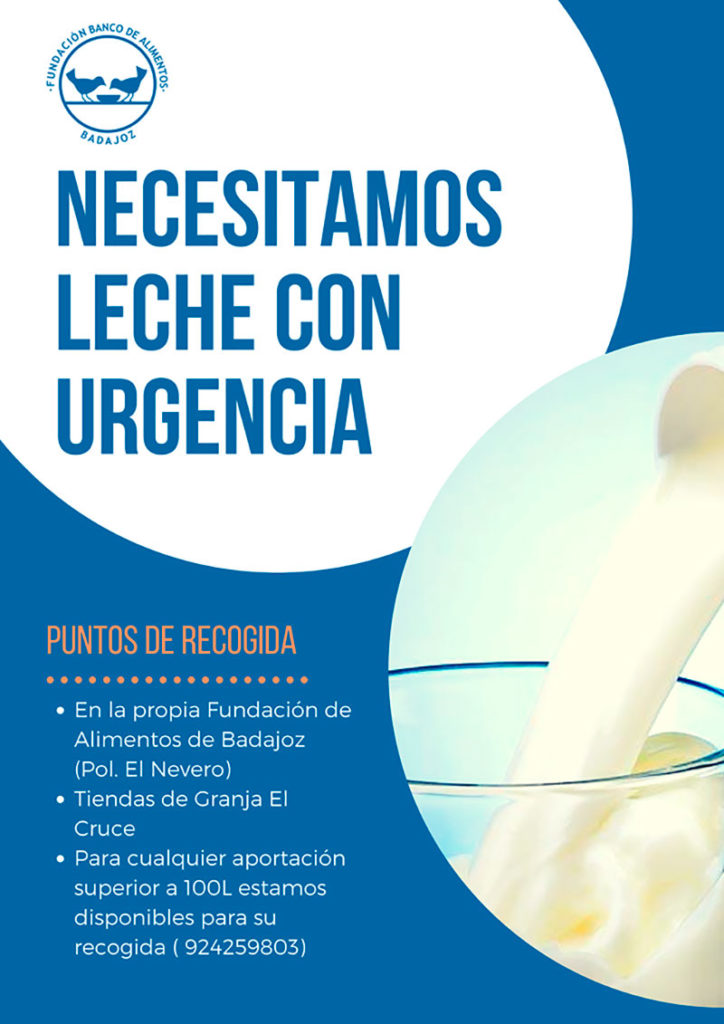 “Sin vuestra ayuda será imposible que la reciban”, ha apuntado, para concretar que cualquier ciudadano que quiera colaborar aportando leche se puede dirigir a la Fundación Banco de Alimentos en el Polígono Industrial El Nevero Calle 15, antiguo Silo, de Badajoz y en tiendas Granja El Cruce.