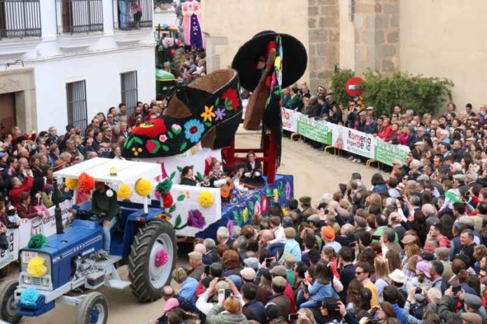 El presidente de la Diputación de Badajoz, Miguel Ángel Gallardo, ha acudido por segunda vez a esta romería, participando junto al alcalde, Elías López, en los actos que han dado salida, desde el centro de la localidad, a las nueve carrozas profusamente decoradas y a los 200 caballistas que se desplazan hasta la ermita de Piedraescrita, lugar donde se concentran los romeros.