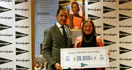 El Corte Inglés ha entregado un cheque por valor de 28.000 euros al Comité español de Acnur, la Agencia de la ONU para los refugiados. Al acto de entrega han asistido la directora de Proyectos y Relaciones Institucionales del Comité español de Acnur, Belén Camba, y el director de Comunicación y Relaciones Externas de El Corte Inglés, Diego Copado.