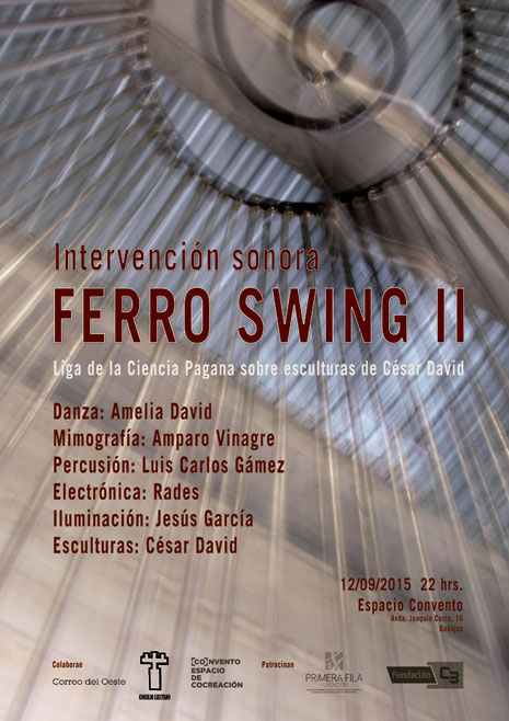 FerroSwing presenta a Amelia David (danza), Amparo Vinagre (mimografía), Luis Carlos Gámez (percusión), Rades (electrónica) y Jesús García (iluminación), que interactuarán con las esculturas de César David.