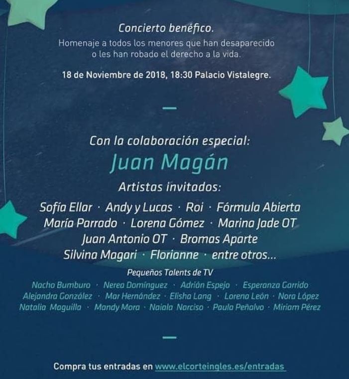 El día 18 de noviembre en el palacio Vistalegre de Madrid se celebrará un concierto con grandes artistas y niños talentosos para recaudar fondos que ayuden a estas personas en su periplo judicial y psicológico.