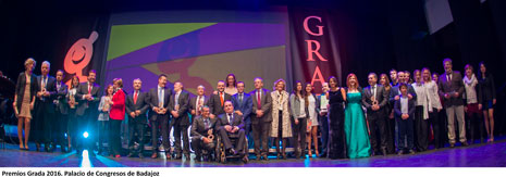La revista Grada, tras diez años de publicación mensual ininterrumpida, entrega la novena edición de sus premios, para reconocer a los extremeños más destacados en Cultura, Deporte, Ocio, (patrocinado por el Área de Cultura de la Diputación de Badajoz), Empresa(patrocinado por Caixabank) e Integración. Se entregan tres galardones más: al Emprendimiento social, patrocinado por la Fundación Caja Badajoz; a la Innovación social, patrocinado por el Sexpe; y Trayectoria toda una vida.