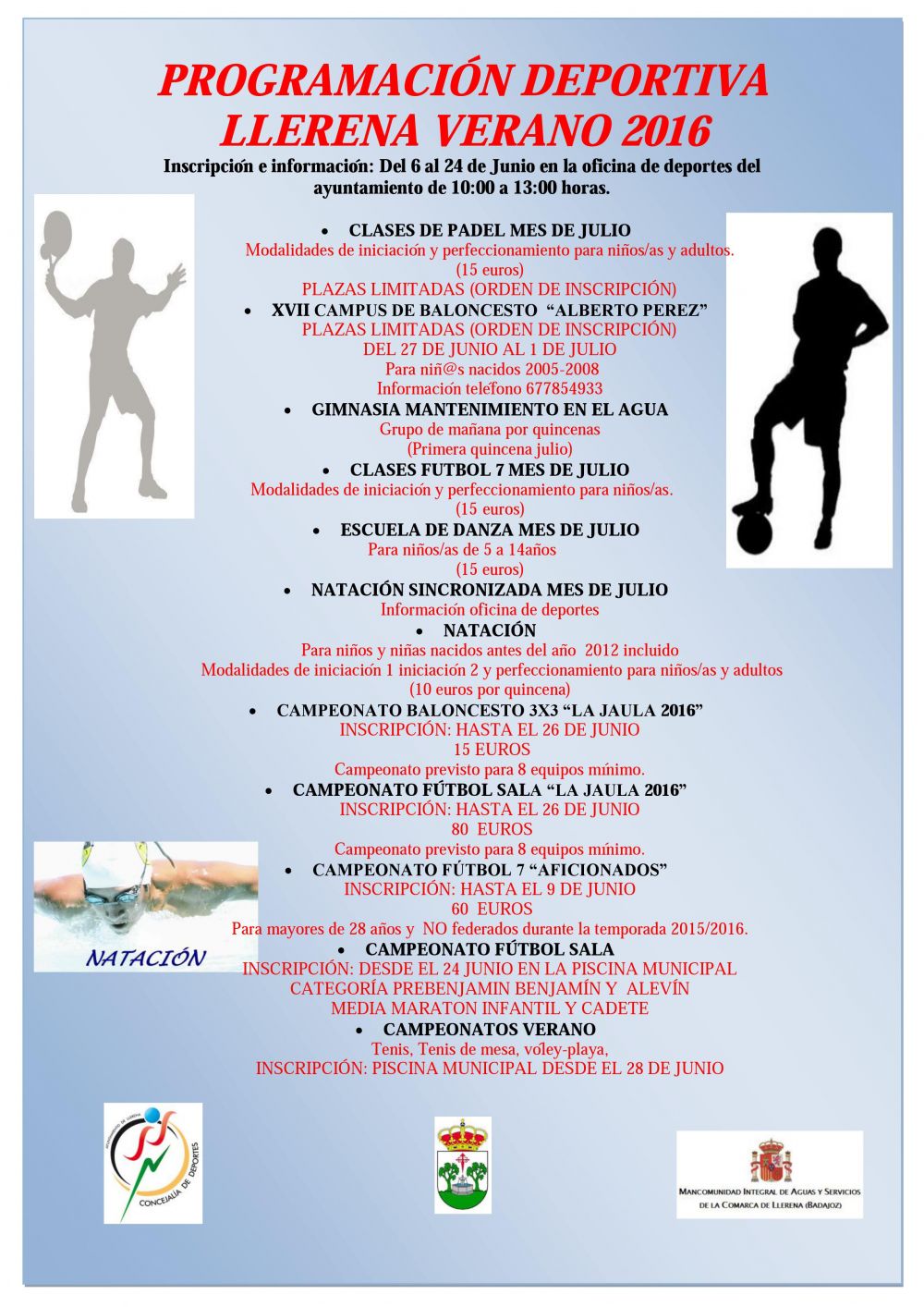 El Ayuntamiento de Llerena ha abierto el plazo para inscribirse en las actividades deportivas del próximo verano en la localidad pacense. Hasta el próximo 24 de junio pueden apuntarse los interesados en participar, en la oficina de Deportes del Ayuntamiento, de 10.00 a 13.00 horas.