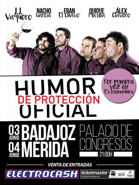 El 3 y 4 de junio llega a Extremadura ‘Humor de Protección Oficial’, espectáculo de los cómicos de Paramount Comedy J.J. Vaquero, Nacho García, Quique Matilla, Alex Clavero y Fran ‘El Chavo’.