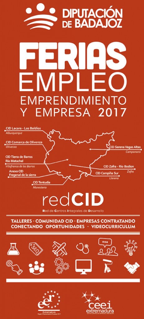 Durante el último trimestre del año se llevarán a cabo ocho Ferias de Empleo, Emprendimiento y Empresa en diferentes Centros Integrales de Desarrollo de la provincia, con el objetivo de mejorar el acceso al empleo, favorecer la contratación, dinamizar el emprendimiento, fomentar la competitividad de los negocios y potenciar la colaboración empresarial. Además, estas ferias acercan recursos a todos los rincones de la provincia para lograr la igualdad de oportunidades de acceso a empleo.