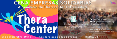 Un año más la Fundación Primera Fila celebra en el hotel Las Bóvedas de Badajoz su cena anual, esta vez bajo el lema ‘Empresas solidarias’, para que cada empresa pueda patrocinar una mesa, en una iniciativa en favor de su centro de investigación y tratamiento ‘TheraCenter Extremadura’.