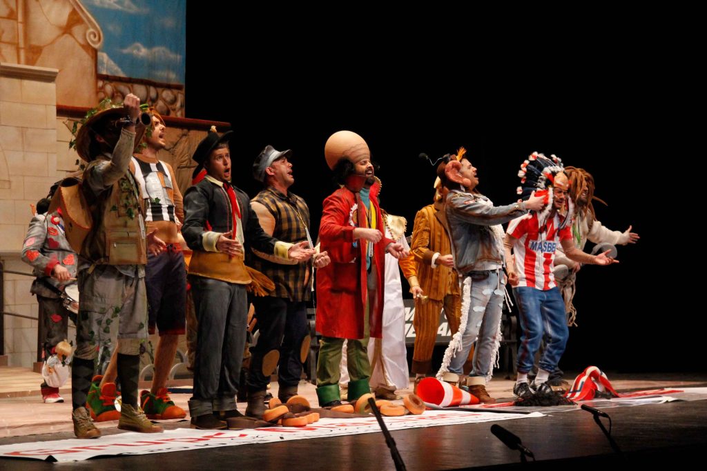 Unos minutos pasaban de las 21:30h. cuando las luces del López de Ayala se apagaban. Era el momento de recibir a la primera murga de esta edición del COMBA, la primera sin presentadores. La voz en off presentaba a Los Callejeros “salen por los los pelos”.
