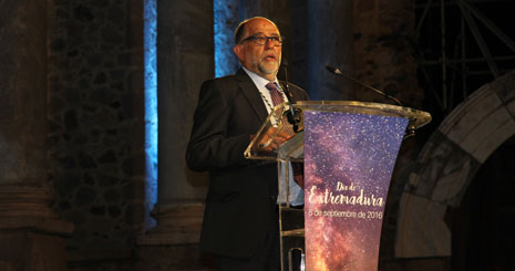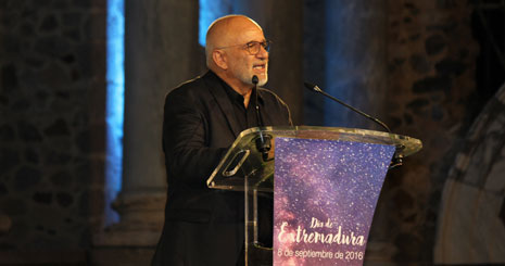 El acto institucional lo cerró Reyes Abades, uno de los mejores especialistas en efectos especiales del país y Medalla de Extremadura en el año 2000. Abades, nueve veces galardonado en los Premios Goya, destacó su orgullo de representar una tierra de luchadores y se emocionó con el afectó del público allí presente.