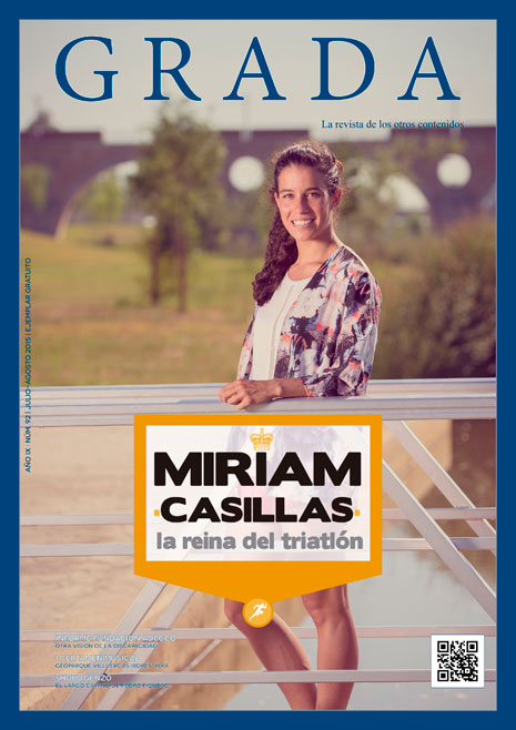 Portada de la revista Grada número 92, con la triatleta pacense Miriam Casillas, que intentará clasificarse para los Juegos Olímpicos de Río de Janeiro tras ganarlo todo en la categoría sub23.