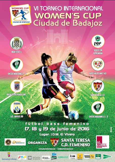 Futbolistas de hasta 14 años de la Selección Extremeña, el Boavista F.C., dos equipos del Oviedo Moderno C.F. (A y B), el A.D. Amigos 80, el Badajoz-Olivenza FEM, el Rayo Vallecano SAD y el Santa Teresa C.D. participarán en este torneo organizado por este último club pacense, que incluirá en el encuentro una conferencia ‘La mujer y el fútbol’ organizada por el Liga de Fútbol Profesional y el Consejo Superior de Deportes.