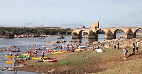 La Diputación de Badajoz apuesta por el destino turístico del Lago Alqueva y en la tercera edición de su descenso se ha recorrido en piragua la distancia entre Puente Ajuda y Villareal .