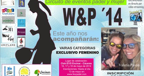 Del 17 al 19 de mayo, en el Club Polideportivo El Encinar de Cáceres, se celebrará la sexta edición del W&P 2014, el torneo de pádel para mujeres que organiza la federación extremeña de este deporte .
