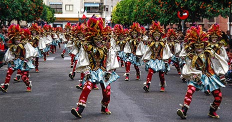 A las 12 del mediodía comenzaba el Desfile en Badajoz, la lluvia que tanto había amenazado días atrás se tomo una tregua y el sol brillaba sobre el recorrido de las agrupaciones. Los bombos comenzaron a retumbar y el público que allí se dio cita pudieron sentir el sonido del Carnaval. Originalidad, ritmo, colorido y pasión son las palabras que definen una fiesta como ésta.