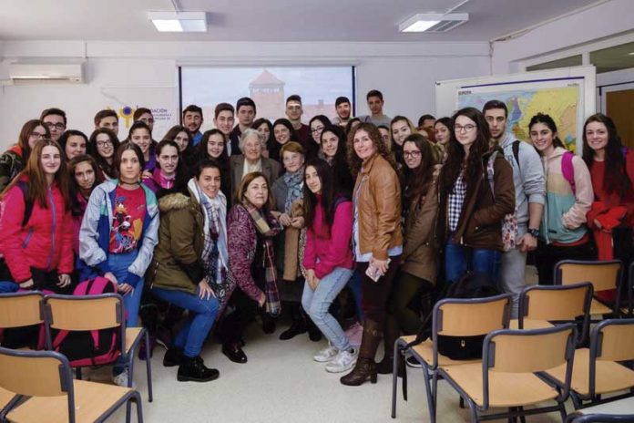 Sonjia Vrscaj, eslovena de 92 años y superviviente del campo de concentración de Auschwitz, ha ofrecido una charla en el instituto ‘Ildefonso Serrano’, de la localidad pacense de Segura de León, dentro del proyecto ‘Cultura europea y valores sociales. Caso particular de una superviviente de Auschwitz’. En la charla ha estado acompañada por la embajadora de Eslovenia en España, Renata Cvelbar Bek.
