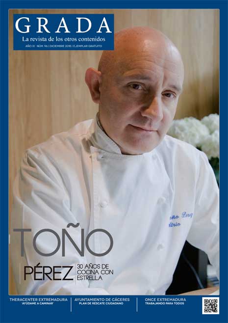 Portada de la revista Grada número 96, con el chef cacereño Toño Pérez, del restaurante Atrio, que cuenta con dos estrellas Michelin y tres soles Repsol.