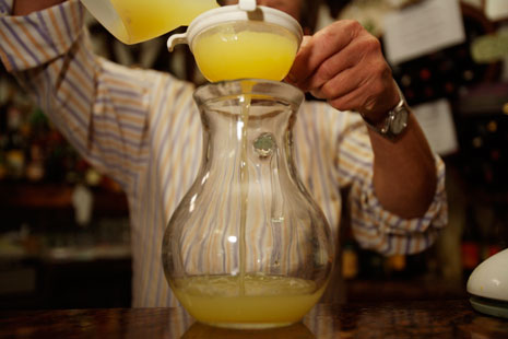 El proceso es sencillo. Primero, para sacarle el máximo sabor, se aplastan unas rodajas de cáscara de limón con azúcar en la base de un recipiente. Posteriomente, se vierten -con la ayuda de un colador- todos los ingredientes en una coctelera y se agita con fuerza durante unos segundos. Como el lector puede imaginarse, la poncha tiene una alta graduación.