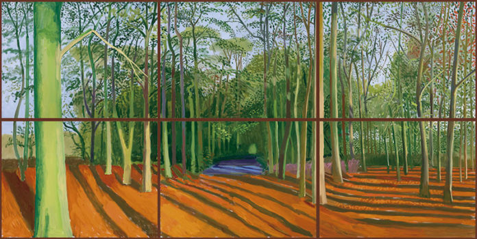 El artista adora la desconocida comarca de los Wolds, situada en una esquina de Gran Bretaña. Desde hace unos años Hockney vive en Bridlington, una pequeña ciudad junto al mar del Norte, argumentando que Monet encontró su retiro en Giverny, Cézanne en Aix, Van Gogh en Arlés, y él en su tierra natal de Yorkshire, donde en plena naturaleza inicia lienzos enormes que luego son completados en su gran estudio. Las grandes rejillas de múltiples paneles fragmentan el espacio en muchos pequeños lienzos que luego son grapados y enmarcados juntos.
