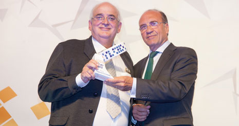 Concedido a Ismael Clemente, CEO de Merlin Properties. Entrega el premio José Luis Navarro, consejero de Economía e Infraestructuras de la Junta de Extremadura.