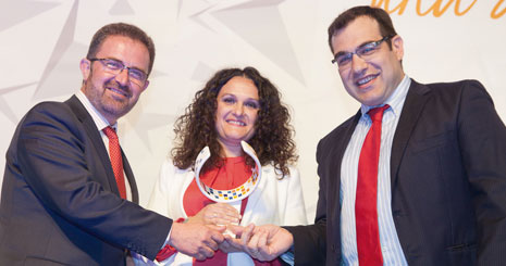 Concedido a Pilar Coslado, de la empresa Almattia. Entrega el premio Virginia Borrallo, vicepresidenta primera de la Diputación de Badajoz.