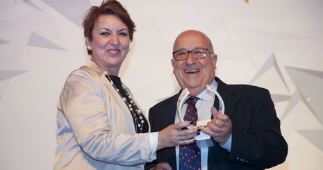 Concedido a Manuel Rui Nabeiro, fundador de Delta Cafés. Entregado por Blanca Martín Delgado, presidenta de la Asamblea de Extremadura.