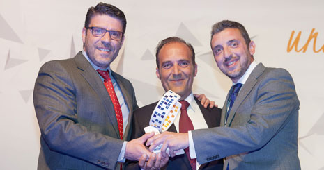 Premio Juventud, patrocinado por RC&Media y entregado por Fernando Medina. Concedido a Agente 360, recoge el premio Mafalda Herrera (foto superior); y a Eficae, recogen el premio José Alberto Amador, Javier Calvo y José Miguel Sánchez. La empresa finalista fue Lucía y el SEO.